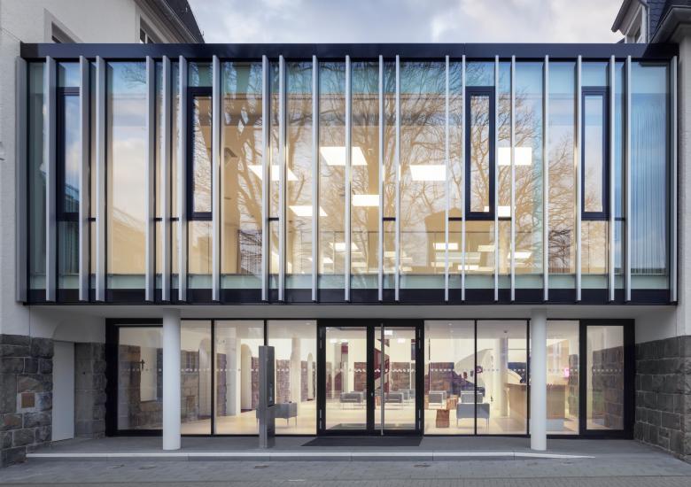 Respektvoller Umgang mit dem Bestand – Die einfache und moderne Architektursprache der Neubaumaßnahme hält sich bewusst zurück. Die baulichen Qualitäten des historischen Gebäudes werden durch den sensiblen Eingriff bewahrt.
