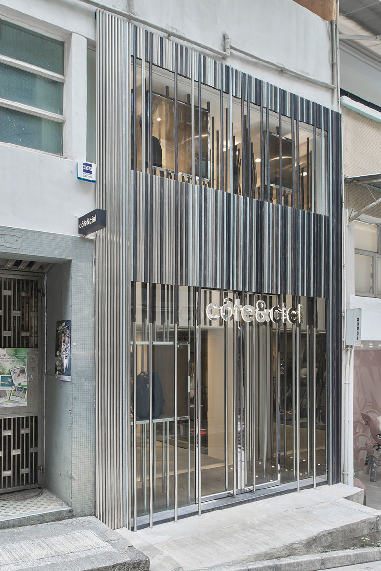 Côte&Ciel is inspired by the complementary clash between coast (côte) and sky (ciel). Linehouse’s interpretation visualises the collision of these two elements in various ways: nature vs urbanity, inside vs outside, and reflective vs matt. The site in Hong Kong, on Tung Street in Sheung Wan was designed to contain two double height spaces; one at the entrance and one at the back where a garden was inserted.