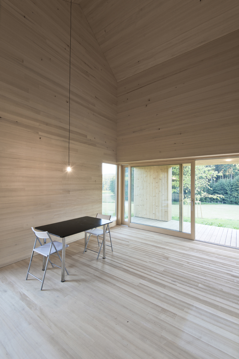 The attributes of the typology of residences in the area: Roof slant, roof shape and proportion are utilised. They have a dynamic relationship with the large openings of the structures and correspond to the dialogue between the structures.