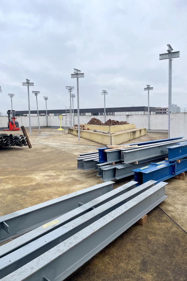 Re-Use und zirkuläres Bauen am Beispiel der Beschattung der Pausenterrassen für das Erlenmatt-Schulhaus. In Zusammenarbeit mit der Zirkular GmbH Basel haben wir die idealen Lamellen für die Beschattung in Form von wiederverwendeten Leitplanken gefunden. Es passt perfekt!