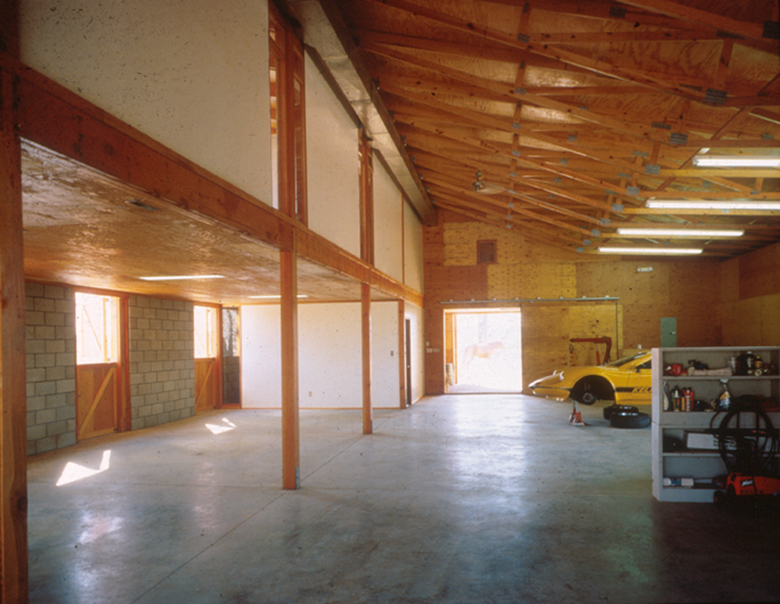 The interior living area embodies many of the concerns expressed in the exterior. Museum stud walls define the spaces and create a sense of openness. At the ground floor, a structural column system that references local pole-barn construction, provides interchangeable spaces that can accommodate either vehicles or animals. Both inside and out, careful attention to construction detail and the choice of material finishes creates a system of structural articulation that helps inscribe the BarnHouse with its natural setting. The primary assertion throughout this project is that architecture is a studied relationship between building and land. As I reflect upon the quality of spaces we made for the animals and the folks I can safely say they both got a pretty good deal.