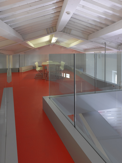 The project is the expansion of the Cabel Leasing headquarter, in the historic center of Empoli. The new building is developped on two levels. On the first floor there are different kind of workstation: glazed box offices, the double workstations with low furniture-head or single workstations; all together they turn and draw a route that connects the meeting room and the new branch directional bureau. Above "floats" the large loft shielded by glass parapets that reflect the surrounding space and give rise to alignments and unexpected perspectives. Generally the colour creates a fluid and dynamic space: the gray and white colors (used for the furnitures and the wall painting) and the no colour (of the glazed parts) lighten the ambient strongly distinguished, while the bright red color of the rubber flooring emphasizes the furnitures in their characterization.