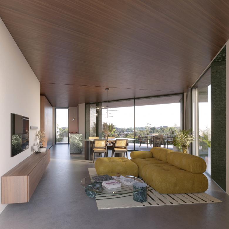 The project for a new residential building in Treviso is developed on a plot located near the Sile river. The design concept aimed to harmoniously enhance the surrounding green context, integrating private terraces for each unit and communal spaces designed for the residents' community.