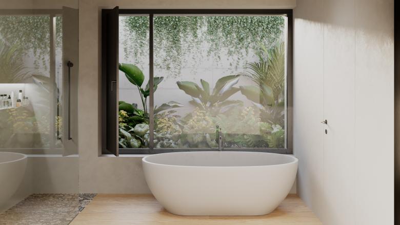 The layout of the residence is carefully planned to ensure privacy while maintaining openness. Full-height glazing in the main living areas maximizes natural light and offers panoramic views over the curated garden and the long lap pool, while visual connections between interior and exterior spaces create a seamless flow between architecture and landscape.