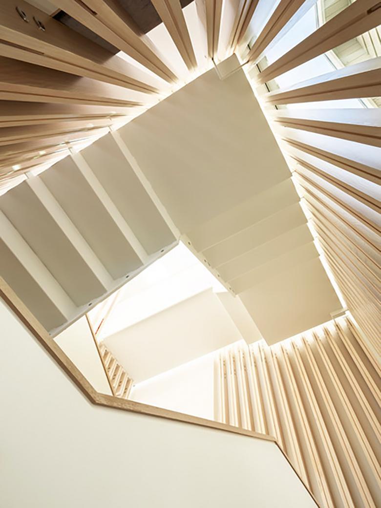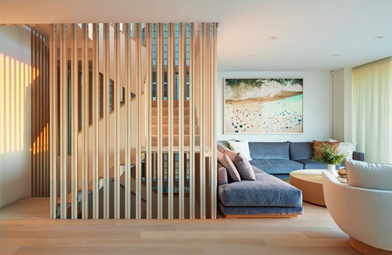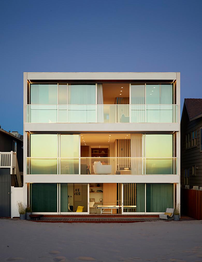 The Oxnard Beach House combines intimate interior spaces with expansive ocean views and a beachfront setting. The home’s three levels are joined by the main design element of the house: a central stair core, screened by wood panels and flooded with abundant natural light courtesy of the coastline. The southern façade features wall-to-wall sliding glass doors on all three levels to further maximize ocean views, and to blur the sightline between the home and the beach itself.