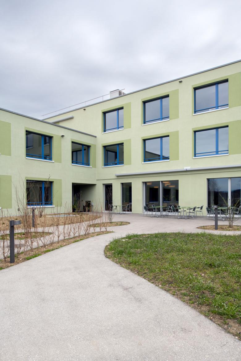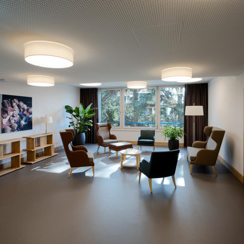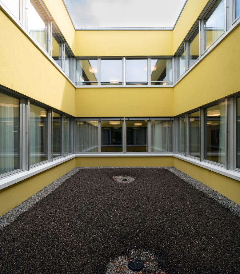«Das Haus im Park» mit einer klaren Volumetrie und Geometrie. Zwei abgetrennte Aussenräume mit dem öffentlichen Park zur Strasse und dem privaten Demenzgarten. Betriebliche Grundgedanken und Ideen: Keine Sackgassen. Wege sollen zu einem Ziel führen. Offene und helle Aufenthalte mit verschiedenen Ausblicken und Lichteinflüssen zum Hof, zur Natur und Umgebung. Ein klares Zentrum als Identifikation für die Bewohnerinnen und Bewohner. Funktionsräume zentrumsnah. Rundlauf als Doppel 8 für die Bewegung, Mobilität und Orientierung mit Nischen und Ruheräumen.