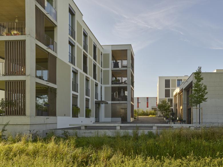 Auf den drei Siedlungsfingern, welche in drei Etappen gebaut wurden, bilden verschiedenartige Baukörper Einheiten von angenehmer und überschaubarer Grösse, strukturell verwandt mit Weilern im Mittelland (Stöckli, Spycher oder Schopf). Jeder Finger bietet Raum für unterschiedliche Bedürfnisse und Ansprüche bezüglich Wohnen, Freizeit und in geringem Ausmasse auch Arbeit. Die Gestaltung der Bauten erscheint als Symbiose von urbanen und typisch ländlichen Elementen. Die mit Holz- und Betonstrukturen gegliederte Fassadenbilden eine erkennbare Einheit. Angestrebt wird ein zurückhaltendes, langlebiges und identitätsstiftendes Erscheinungsbild.