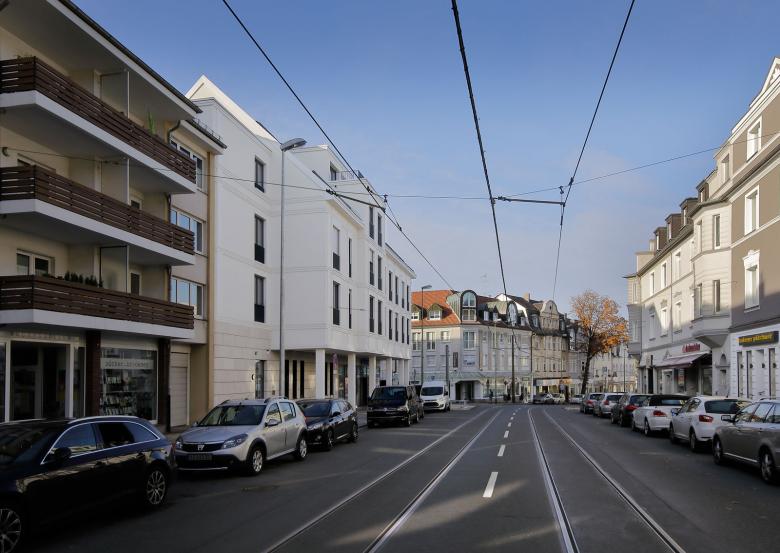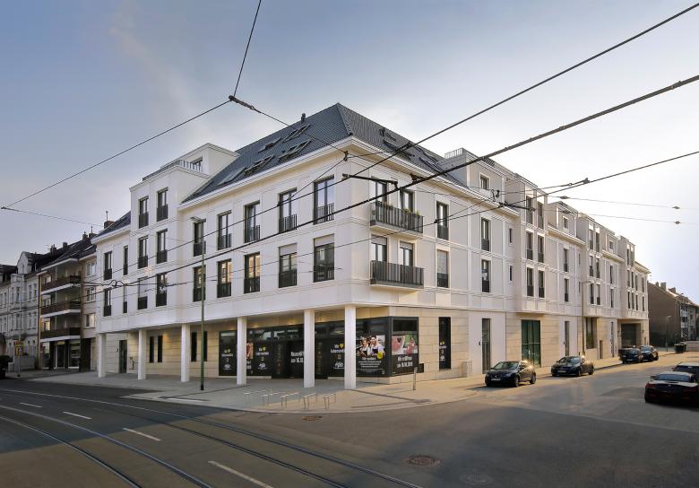Essener Süden. Im Zentrum des Stadtteils ist ein neuer Wohnkomplex mit Einzelhandel entstanden, welches sich bewusst historisch an den Stil der zahlreichen Villen in Bredeney anlehnt.