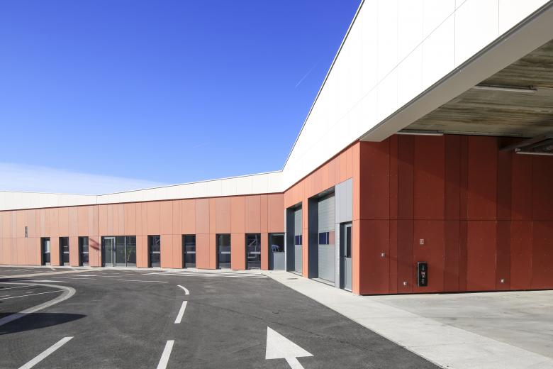 The aspect generated by the form and materials used enters in dialogue with the surrounding landscape, breaking with the usual image of a technical center.