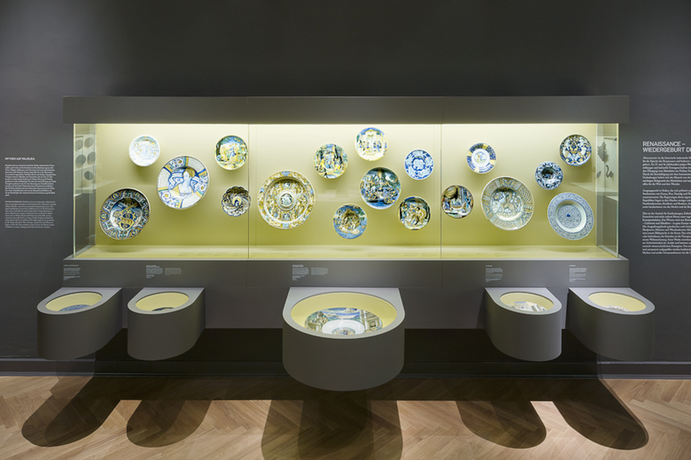 Touring the splendor of the redesigned rooms of the Museum für Kunst und Gewerbe Hamburg, visitors are reintroduced to a selection of 900 treasures from the museum’s Ancient Art and Renaissance Collections. Impressive spatial landscapes, particular color palettes and impressive lighting direct the visitors’ gaze to the central themes of ancient and renaissance empires which fascinate us to this day.