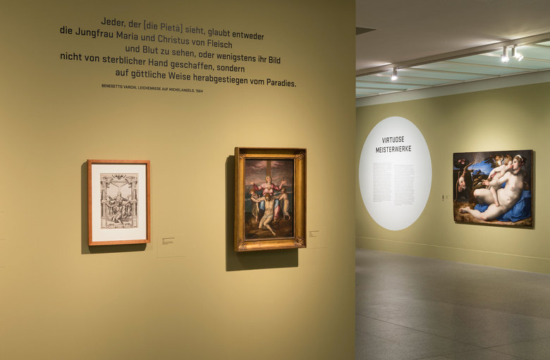 Die Ausstellung erzählt von der weitreichenden Wirkung Michelangelo Buonarrotis auf die europäische Kunst. Im Mittelpunkt steht die Rezeptionsgeschichte Michelangelos von der Renaissance bis heute. Präsentiert werden Werke bedeutender Künstler aus den letzten fünf Jahrhunderten: Von Raffael, Pontormo, Allori, Tintoretto, Annibale Carracci, Giambologna, Caravaggio, Rubens, Delacroix, Rodin, Cézanne bis zu Mapplethorpe oder Lüpertz.