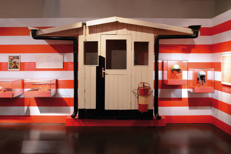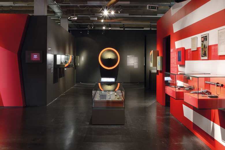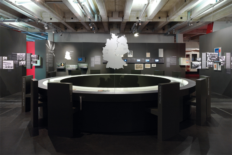 The exhibit presents the historical events between 1958 and 1961 – the diplomatic Berlin Crisis, the building of the Berlin Wall, the Panzer tank confrontation at Checkpoint Charlie and the impending nuclear war. The goal is to give visitors from all over Germany a unique opportunity to personally relive the world-changing events of the period and, simultaneously, to experience the pervasive climate of constant danger and uncertainty. The architectural forms and original artifacts help underscore this persistant atmosphere of conflict and mutual intimidation. Creating a dialectic between somber and aggressive installational forms, the space plays with the visitor's perceptions of fear, anger, and even, at times, helplessness.