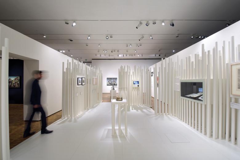Im Vordergrund steht dabei jeweils das Unbewusste und das Selbst. Eine Abfolge von schwarzen und weißen, unterschiedlich inszenatorisch geprägten Räumen unterstütz dabei die Themen der Ausstellung, die sich bewusst und kontrastreich von den üblichen konventionellen Präsentationsformen in Kunstausstellungen absetzen, ohne dabei das Thema des Unbewussten auch in der Inszenierung zu verlassen. Direkt oder unbewusst können die eingesetzten Gestaltungselemente und Materialien so auch erlebt werden. Das Thema des Unbewussten im Traum findet sich z.B. in schräg eingestellten Wandscheiben mit „raumauflösenden“ weiß-transluzenten Fadenvorhängen wieder. Schräg in den Raum eingestellte Wandscheiben mit schwarz spiegelnden seitlichen Aussparungen verweisen auf das Verborgene, auf die Zwischenbereiche des Bewusstseins. Ein gefliester Raum bildet eine mögliche Analogie zu einem Schlachthaus im Zusammenhang mit der zum Teil drastischen Darstellung weiblicher Körper. Kettenvorhänge werden im Bereich der sexuellen Begierden und Perversion raumbildend und inhaltlich eingesetzt. Ein Wald aus weißen Stangen bindet das Thema Natur in die Ausstellung ein. Die Ausstellung endet mit dem Bereich „Haunted Identities“ und der Skulptur „The Doll“ von Hans Bellmer auf einem Podest aus Chromstahlspiegeln.