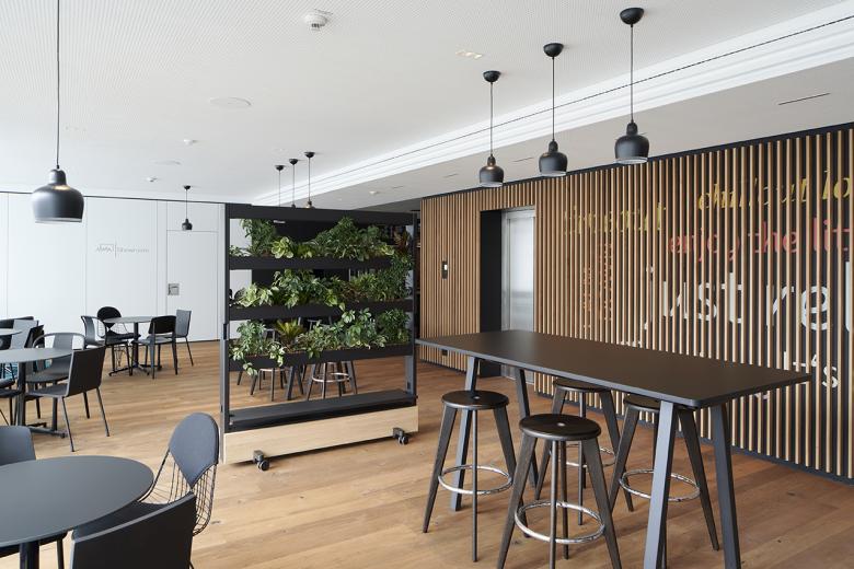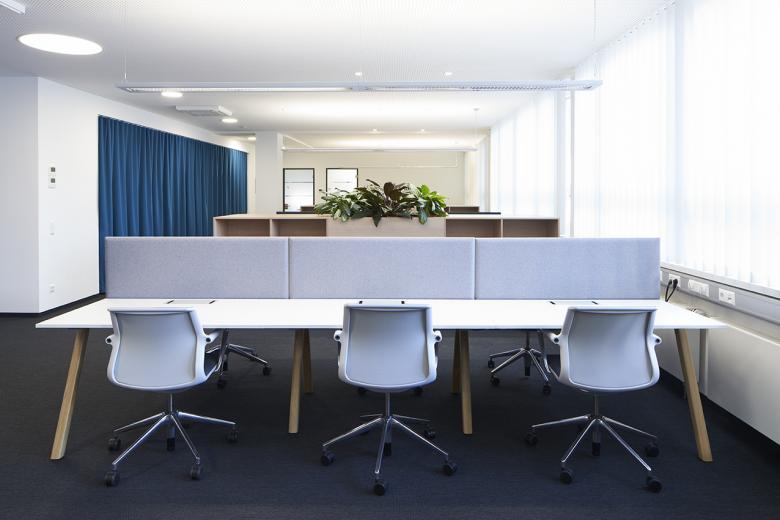 So ist die Innengestaltung der 2.800 m² hell, freundlich und zeitlos. Neben Büroräumen und mobilen Arbeitsplätzen gibt es einen neuen Haupteingang mit Empfangsbereich und einen großen Showroom zur Produktpräsentation. Weiterhin laden großzügige Schulungs- und Meetingräume sowie Kreativ-Inseln zum Austausch mit den Kollegen ein. Fokusräume bieten Rückzugsmöglichkeiten für Online-Meetings oder Ruhearbeit.