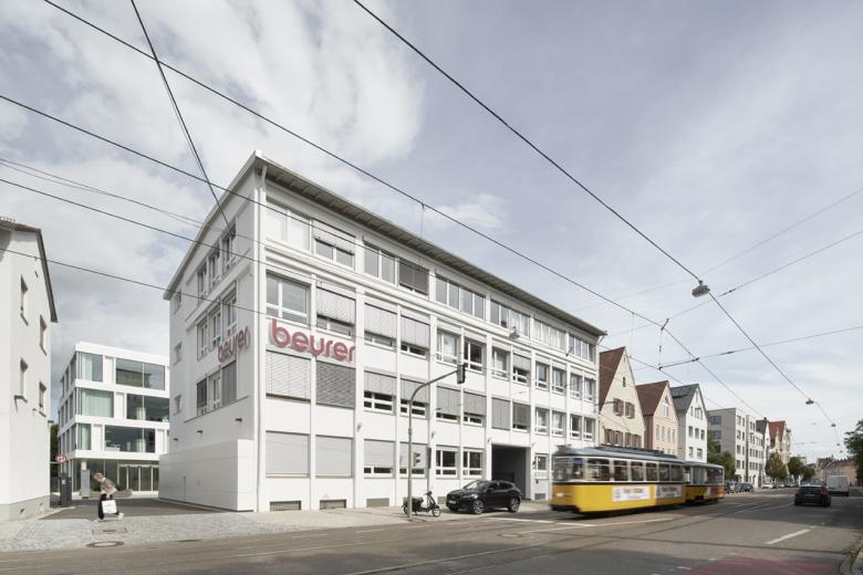 Der Hauptstandort von Beurer befindet sich seit den 50er Jahren in Ulmer Stadtteil Söflingen, mitten im belebten Wohnquartier. Ein für Beurer wichtiger und identitätsstiftender Faktor. Denn eine solche urbane Struktur um den heutigen Campus findet sich in keinem Gewerbegebiet. Die sehr gute öffentliche Anbindung, Einkaufsmöglichkeiten, Bäcker, Restaurant, Fitnessstudio und auch Kita gleich um die Ecke bieten insbesondere für die MitarbeiterInnen wertvolle Vorteile.