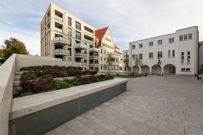 Entstanden sind 97 Wohnungen in verschiedensten Größen. Nach dem Krieg errichtete, neuere Anbauten wurden zurückgebaut. Das damals nicht komplett wiederaufgebaute Dach des Westflügels wurde in historischer Kontur neu errichtet. Zwei Neubauten mit 23 Wohnungen befinden sich zudem auf der Nordseite des Geländes und komplettieren das Ensemble. Auf der rückwärtigen Seite des Hauptflügels entstanden verschiedene Wohnhöfe mit Spielflächen und Aufenthaltsbereichen.