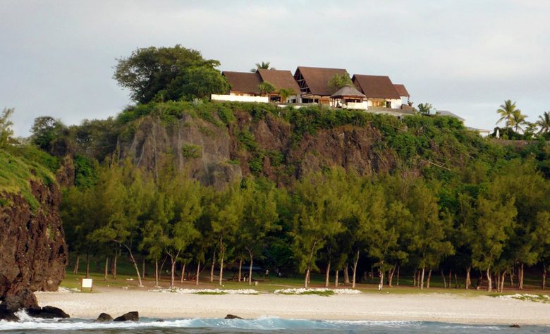 On the west side the site provided a cliff edge view of the vast Indian ocean, and on the east side a more protected view from under the shade of the palm trees towards the green slope of the island's indigenous countryside. The concept aimed to naturally merge these complimentary elements : The west sea-facing side would be vast, majestic and entirely on the water, blending into the ever-changing elements with the noise of the ocean, whereas the east side would be green, calm and relaxing… almost meditational.