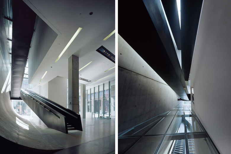 Lighting solutions for the Lois and Richard Rosenthal Center for Contemporary Art match the dynamism of the museum’s architecture. Instead of traditional floodlights, linear luminaires concealed in the exterior parapets outline the building’s stacked volumes. Office ceilings are critical to the nighttime identity of the project due to the fact that they add spatial depth and become an integral part of the façade. Visible from the outside, luminous bands are arrayed above the open-plan spaces on two stories in an accelerated pattern. This creates an exaggerated perspective effect that subtly reinforces the architecture’s sense of movement.