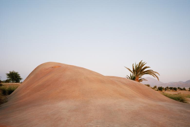 Situated at the intersection of Israel, Egypt, and Saudi Arabia, and only 80 miles south of the ancient city of Petra, the site is surrounded by iconic landscapes. With such beauty and a strong sense of place, we looked to the undulating dunes of the coast to see how we might “lift” and “carve” the desert to create silent, poetic structures.