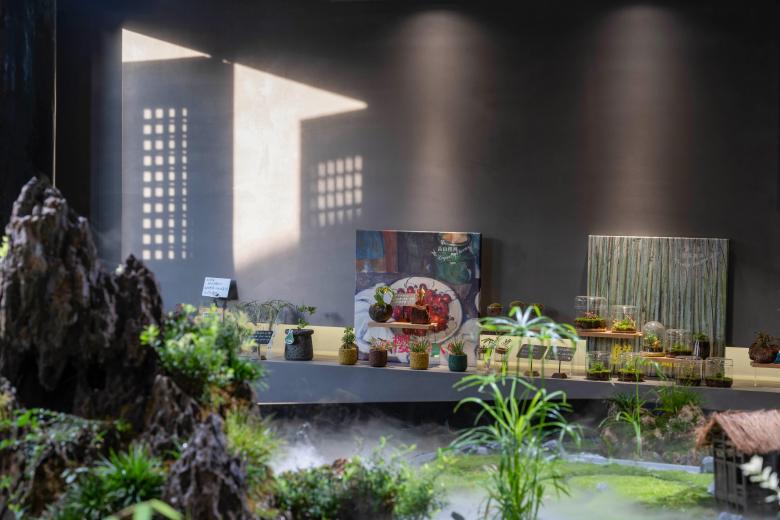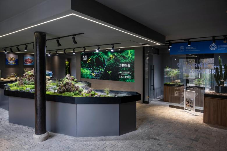 The new business format after the renovation is reflected in the fact that the whole art store has a new way of operation and new means of operation, as well as new business techniques. In terms of space redistribution, the first floor of the new building is mainly set up as an exhibition space, including a moss exhibition space and a mini-showroom area. On the second floor, there is a workshop area with teaching function, which makes the whole building not only has commercial function, but also has the function of exhibition and teaching.