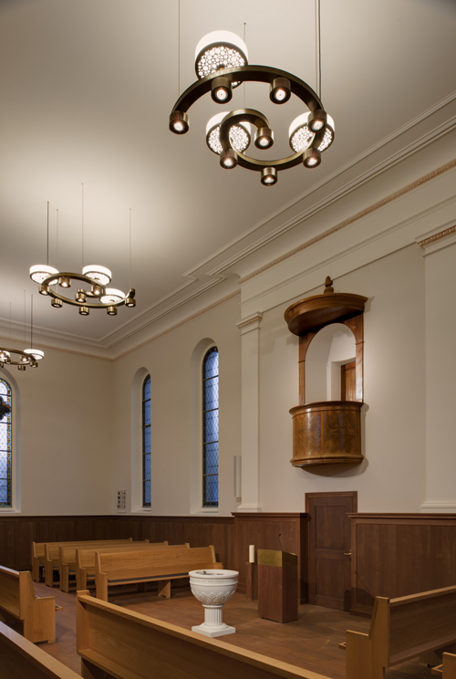 Die Kirche wurde 1816-18 vom Architekten Hans Conrad Stadler 1788-1846 gebaut. Nach verschiedenen verunklärenden Umbauten, zuletzt 1978, orientiert sich die aktuelle Renovation an der ursprünglichen räumlichen Identität des klassizistischen Bauwerks. Die Renovation erfolgte in enger Zusammenarbeit mit der städtischen Denkmalpflege.