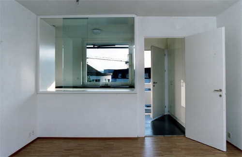 Im zweiten Wohngeschoss wurden jeweils zwei Wohnungen zu einer grösseren 2-Zimmer-Wohnung zusammengelegt.Mit einem grösseren Fenster auf dem Laubengang wurde neu auch eine Orientierung hin zur Stadt ermöglicht. Im dritten Wohngeschoss, einer neuen Aufstockung, wurde ein Einraum-Konzept realisiert, bei dem die Nutzungen in Nischen liegen, die durch ein in der Mitte stehendes Möbel generiert werden.