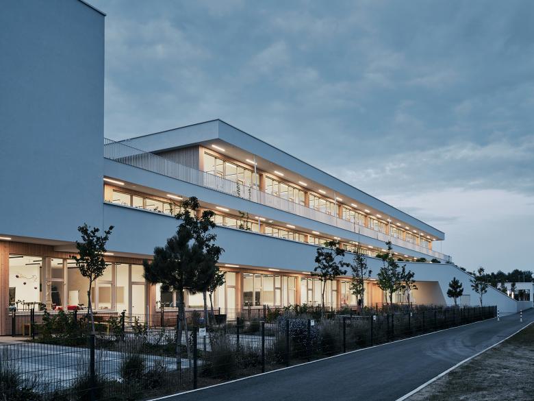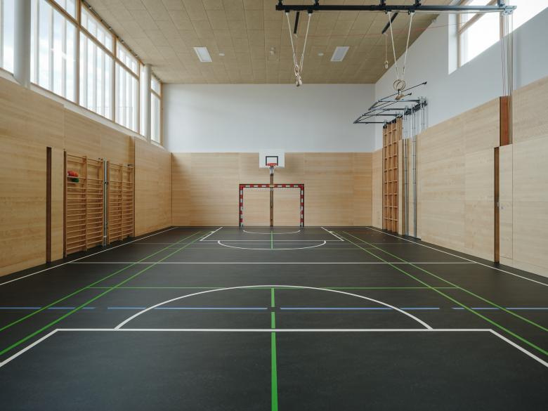 The building is rationally conceived, not only in terms of organisation but also with regard to the construction and building method. The main loadbearing elements follow the classroom grid through all levels, in this way achieving an efficient layout of piers, walls slabs and floor slabs. To achieve the requisite storage mass a massive construction method is used for the building, with wood being used for the secondary building parts and for surfaces to achieve tactile and atmospheric spatial qualities.