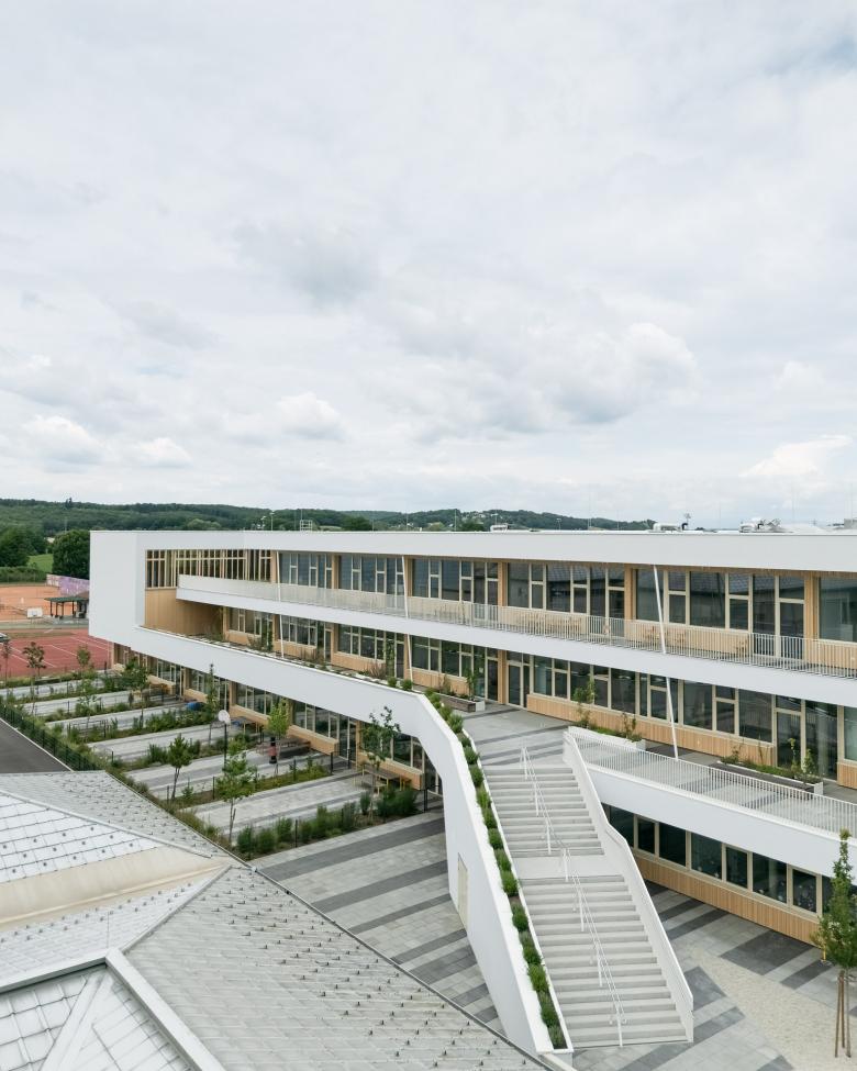 • By stepping the functional levels generously sized terraces are created in front of the main teaching spaces. These can be used during school breaks, but also for giving lessons outdoors. This applies to all three levels of the building.
