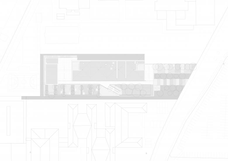 • Through the generously dimensioned openings along the entire south facade the building is clearly oriented towards the centre of the town, with the castle as a reference point.