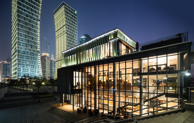 The project is located on the waterfront in Lujiazui, with the iconic Pudong skyline as its backdrop. It is a conversion project for an existing building that was initially constructed as a part of the Pudong landscape master plan. This original pavilion-like structure was built without any intended purpose or function; it had therefore never actually been used and had fallen into rather poor condition. Substantial structural changes, namely the addition of an entire floor as well as the introduction of an additional split-level, were necessary to generate an attractive spatial sequence matching the aspirations of the client.