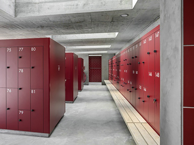 The careful restoration of this modernist facility enhances its impact. The material palette, limited to concrete, aluminum and wood, serves as a contemporary counterpart to the historical features. The pioneering spirit of modernist sport architecture informs this sustainable extension and returns the picturesque location of Géronde to the foreground.
