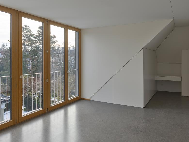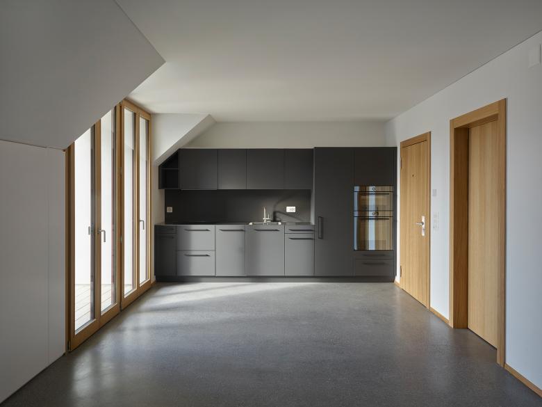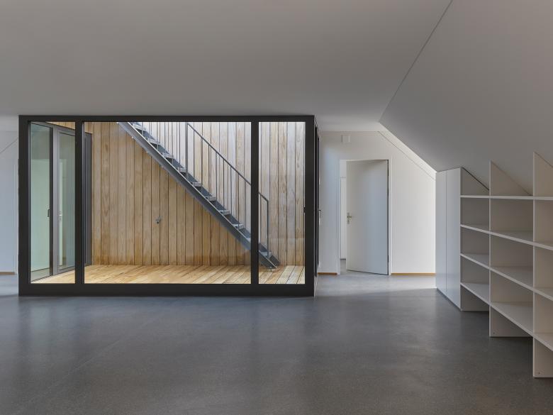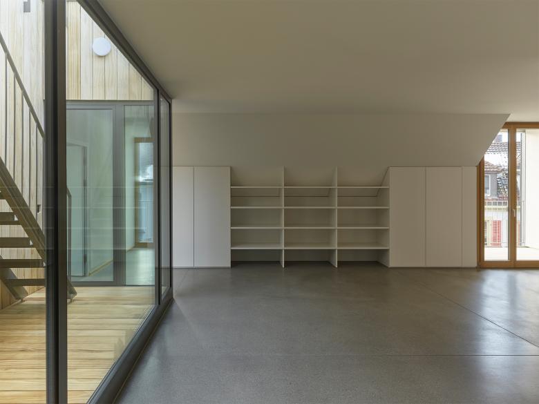 Drei südseitige Innenhöfe verwandeln die ehemaligen grossflächigen Druckmaschinenräume im Erdgeschoss und im Untergeschoss in attraktive und lichtdurchflutete Büroräumlichkeiten. In den drei Obergeschossen werden 10 neue Wohnungen gebaut. Eine umlaufende Balkonschicht, eine grosszügige Dachterrasse und der Zugang zu den Flachdächern über den Büroräumen bieten allen Wohnungen grosszügige Aussenflächen.