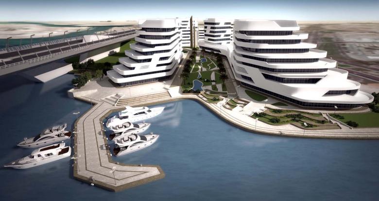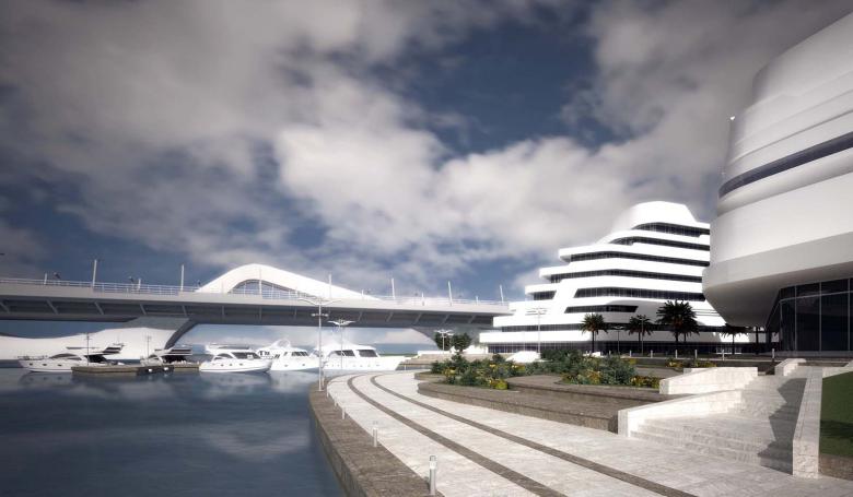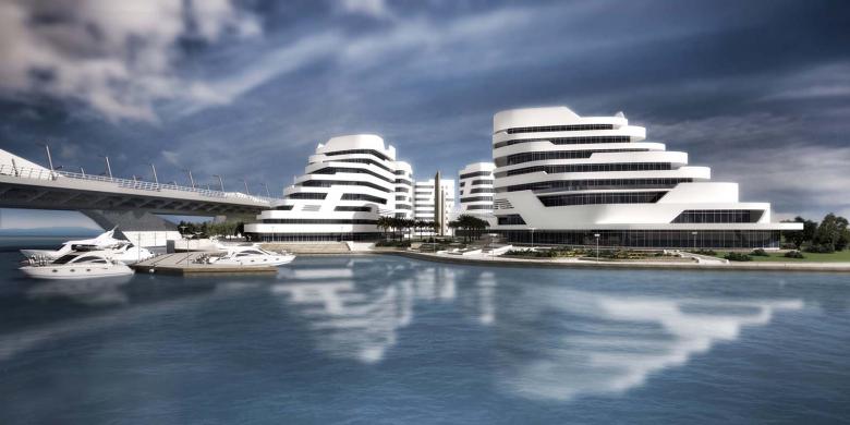 The project is a contexture Mixed-Use Development (MXD) on a flat site located in Abu Dhabi along the river Khor Al-Maqta.
