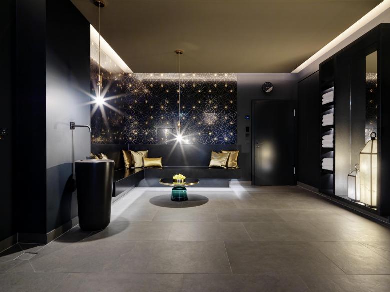In eben diesen dunklen Tönen präsentiert sich der neue Lady Spa. Um einen Raum wie aus Tausendundeiner Nacht, gruppieren sich Sauna, Dampfsauna, Duschwelt und Eisbrunnen. Der ebenso stilvolle Ruheraum bietet Zugang zum Aussenbereich mit Ausblick auf das wunderschöne Bergpanorama.