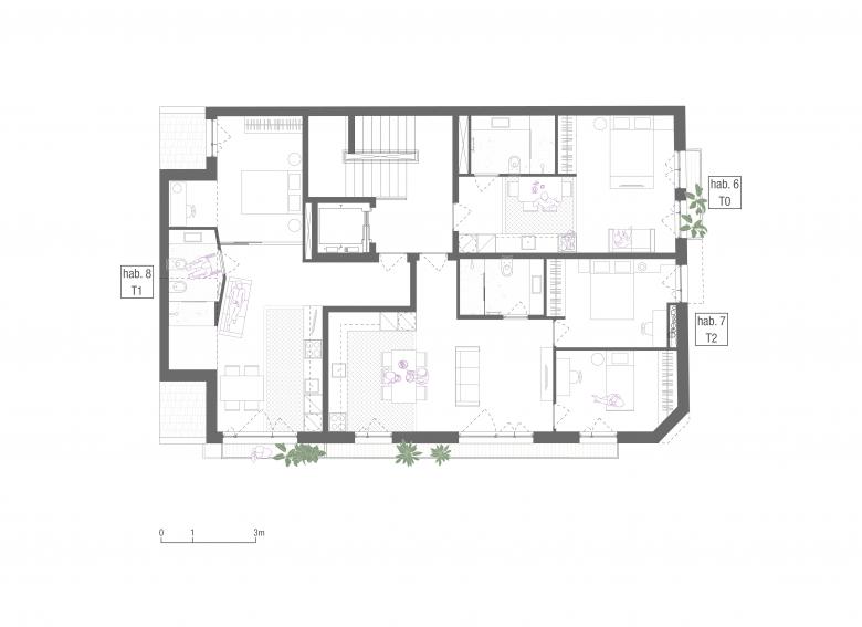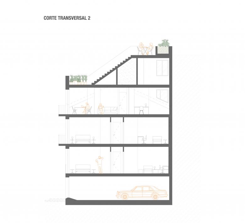 This shy formal freedom of Monte Alegre is the result of its location: the plot is immediately outside the historic center or, better said, at the beginning of the 20th century city. It is an “urban front in consolidation”: a transition zone, where some compositional exercise is already possible, even if with the second intention of sewing and bridging the urban front of its neighbors.