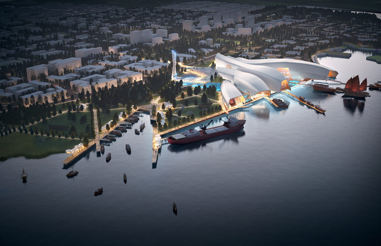 The museum is fronted by a ‘maritime plaza’ where maritime re-enactments and other open air events are intended to actively engage the museum with the city. It is marked by an observation tower also acting as the museum’s energy plant.