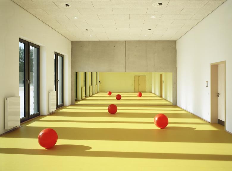 The new building was constructed using a system construction method, which led to an accelerated construction time for the shell. The structure of the building is divided into three areas: Classrooms, event area and sports hall, with each area having a different floor level.