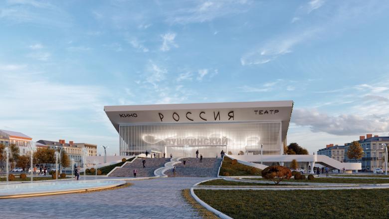 The Pushkinsky Cinema, that, now, is facing a threat to its magnificent identity by enormously sized commercial hoardings, sprawling surrounding markets and lack of space around to make its presence felt and appreciated, can best be revived, not by alteration or imposition, but by delicate, mild and minimal intervention.