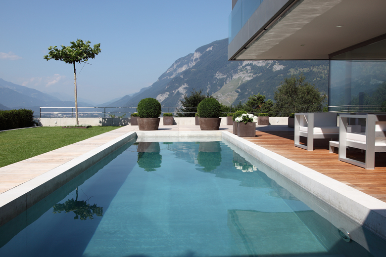 Das Schwimmbad wurde gekonnt auf die Villa abgestimmt und lässt das gesamte Anwesen zu einer harmonischen Einheit werden. Vom über 12m langen Swimmingpool aus hat man zudem einen traumhaften Ausblick in das schöne Bündnerland.