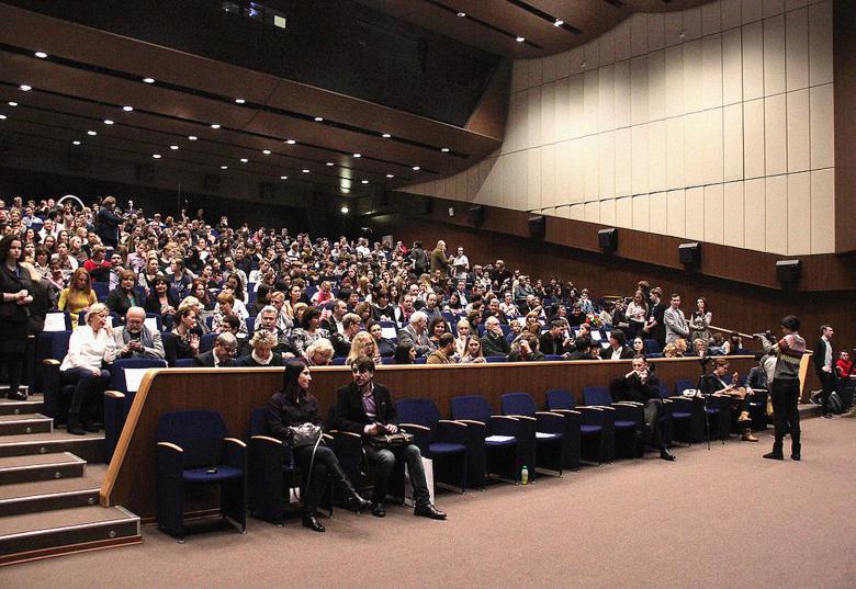 The new auditorium of the VGIK University, known as Gerasimov S.A. Institute of Cinematography, the first film university in the world founded in 1919 in Moscow, was built inside the new university wing.