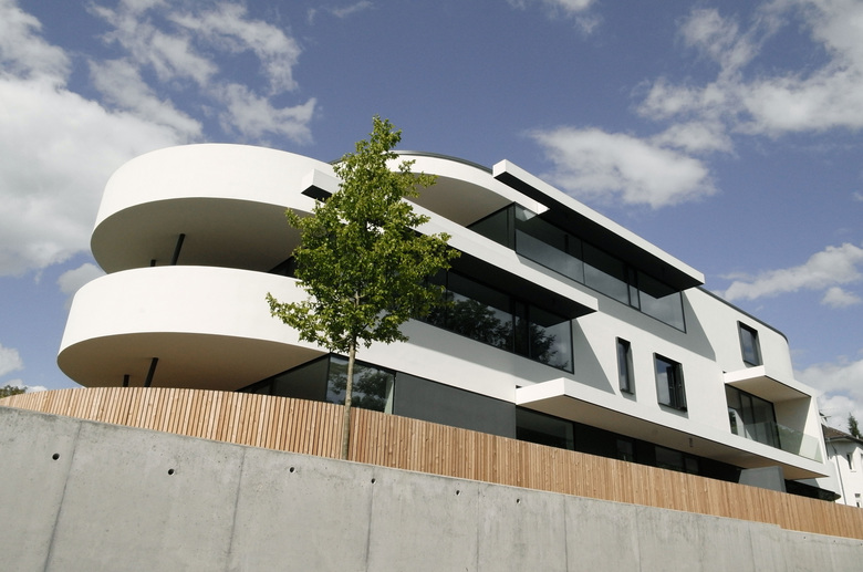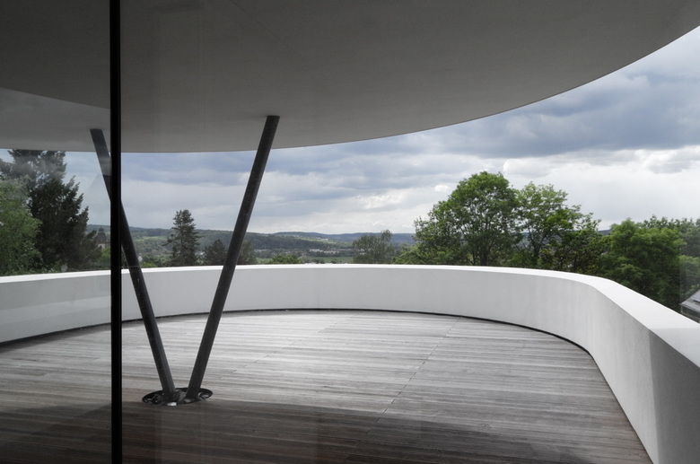 Der Innenraum wird mit natürlichem Licht durchflutet. Die definierten Dachüberstände der Terrassen und Balkone und der Verglasung im Süden verhindern eine Überhitzung im Sommer. Die Anordnung und Ausformungen der Terrassen lassen unterschiedliche Raumsituationen entstehen. Die kraftvolle Geometrie der organischen Form fasst die Terrassen und Innenraum räumlich zusammen. Es entstehen großzügige architektonische Räume mit hoher Aufenthaltsqualität. Geheizt und gekühlt wird über Erdwärme. Thermischer Komfort wird durch Verwendung von Kapillarrohrmatten in Boden und Decke erreicht.