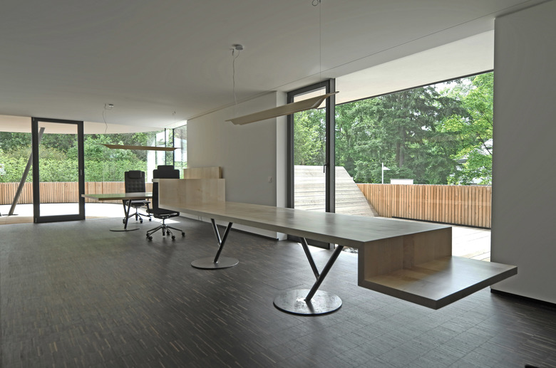 Das Gebäude wurde als kompakte barrierefreie Wohn- bzw. Büronutzung mit fünf Einheiten konzipiert. Auf einem schmal zugeschnittenen Grundstück mit vorgegebenen Baugrenzen wurde das architektonische Konzept entwickelt.
