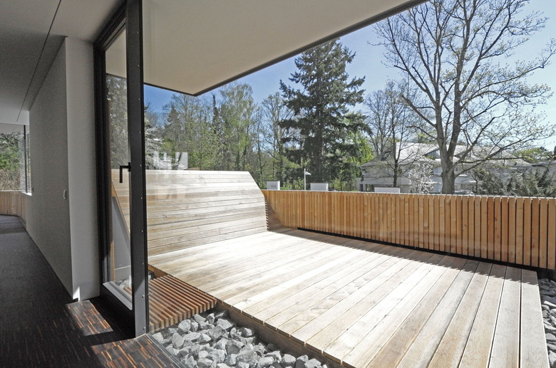 Konstruiert wurde das Gebäude unter den Aspekten der Nachhaltigkeit. Baustoffe wurden nach ihrem Sinngehalt eingesetzt. Aufgrund der Wirtschaftlichkeit, der reduzierten Bauzeit sowie ökologischer Aspekte wurde das Gebäude als vorgefertigter moderner Holzständerbau realisiert. Treppenhaus und Fahrstuhlschacht sind aus Brettsperrholz. Oberflächen aus Holz werden in der Fassade, Brüstung, Terrassen und als Bodenbelag eingesetzt. Die Bäder sind mit Corian, dunklem Parkett sowie dunklen Glasflächen gestaltet.