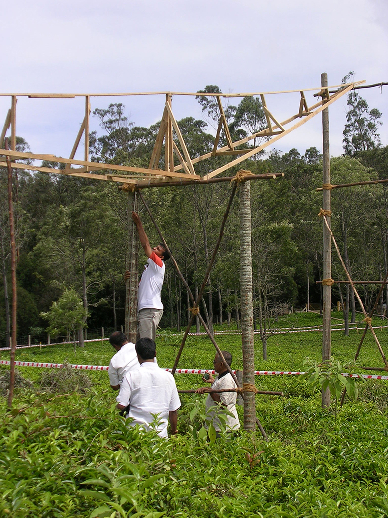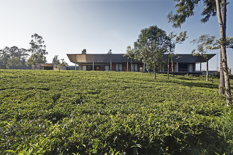 Set in a tea plantation, the house was designed to minimize the impact of its footprint on the landscape. Several inexpensive mock-ups were used to determine the optimum location both from the perspective minimizing impact as well as the framing of potential views. The house is covered in a cantilevered metal roof that floats above the verandah and reflects the tea garden below. A form-finished concrete tube forms the central circulation spine for the house, with interior spaces finished in richly textured natural wood.