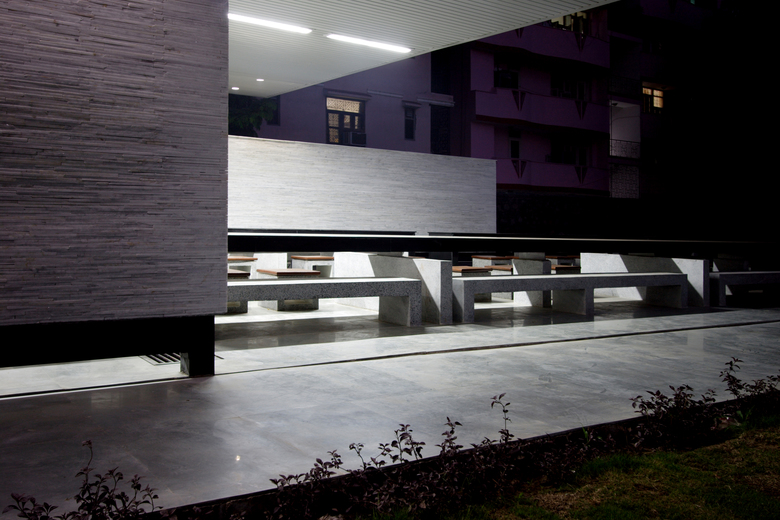 This canteen was proposed as a ‘Semi open air Café’. This allowed to have an ambient temperature for most of the year along with good ventilation, and a variety of degrees of shade from the climate.