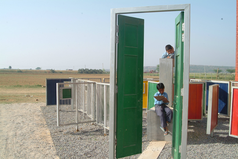 I revisited the playground a few months after its completion. One of the children pulled me aside, “Aao mein tumhe ghar dikhati hooni.” She led me proudly to the space she had ‘discovered’ the enclosed area we had envisaged as private space! Another child set on the top of a panel while his friends spun the panel ground. Not only was the playground a place to play hide and seek, it was a jungle Gym as well as a Merry-Go-Round. Because of the dynamic quality of the playground – each child used it differently, experienced it differently.