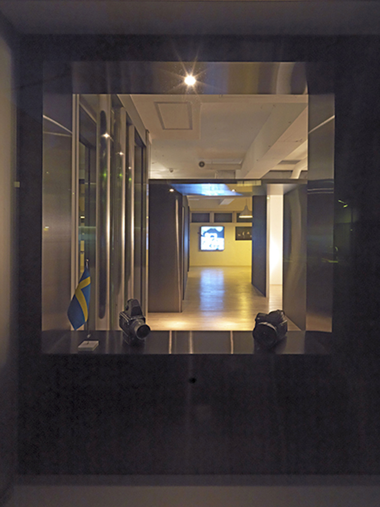 Stepping inside, the visitor is welcomed by the first “frame”—that of the entrance space with a white Hasselblad logo set against a sleek, black hairline stainless steel surface. Immediately adjacent to it is the second “frame,” washed in white paint to accommodate the shooting gallery. Walking further into the space, the sequence of “frames” continues, overlapping at crucial points and “trimming” the boundaries for the president’s office, a meeting space, and an office space as one would when shooting a landscape with a camera.