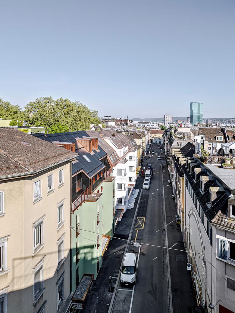 Das Gebäude an der Rolandstrasse 3 liegt im Epizentrum des “Chreis Cheib“ in der Stadt Zürich. Erbaut als Ersatzneubau zwischen 1972 – 1974 schliesst es die damals noch offene Gebäudezeile welche von der Langstrasse bis zur Zinistrasse reicht. Das Untergeschoss verbindet unter dem Innenhof hindurch die Rolandstrasse 3 mit der Dienerstrasse 50. Im Erdgeschoss befinden sich Gewerberäume, darüber Kleinwohnungen.