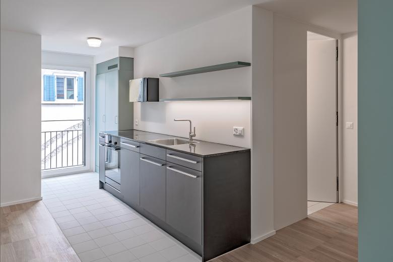 Die Grundrisse werden neu organisiert und aus heute drei Kleinwohnungen pro Geschoss werden neu zwei Wohnungen pro Geschoss Platz finden. In den beiden Dachgeschossen werden zwei neue Maisonettewohnungen erstellt.