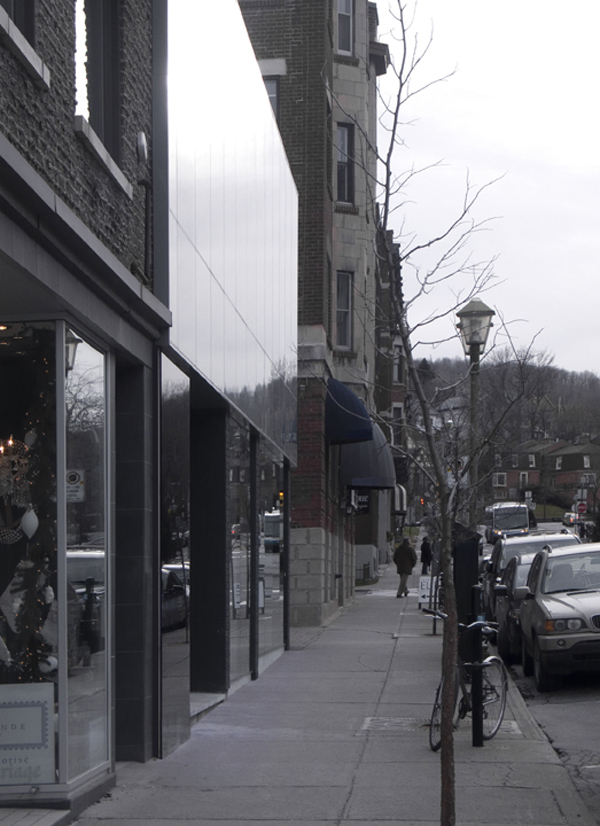 The concept for the facade of the Michel Brisson_ Boutique is based both on the desire to reveal the modern character of the original building, but also on preserving the urban continuity of Laurier Street West, which is comprised of upscale boutiques, salons, and restaurants.